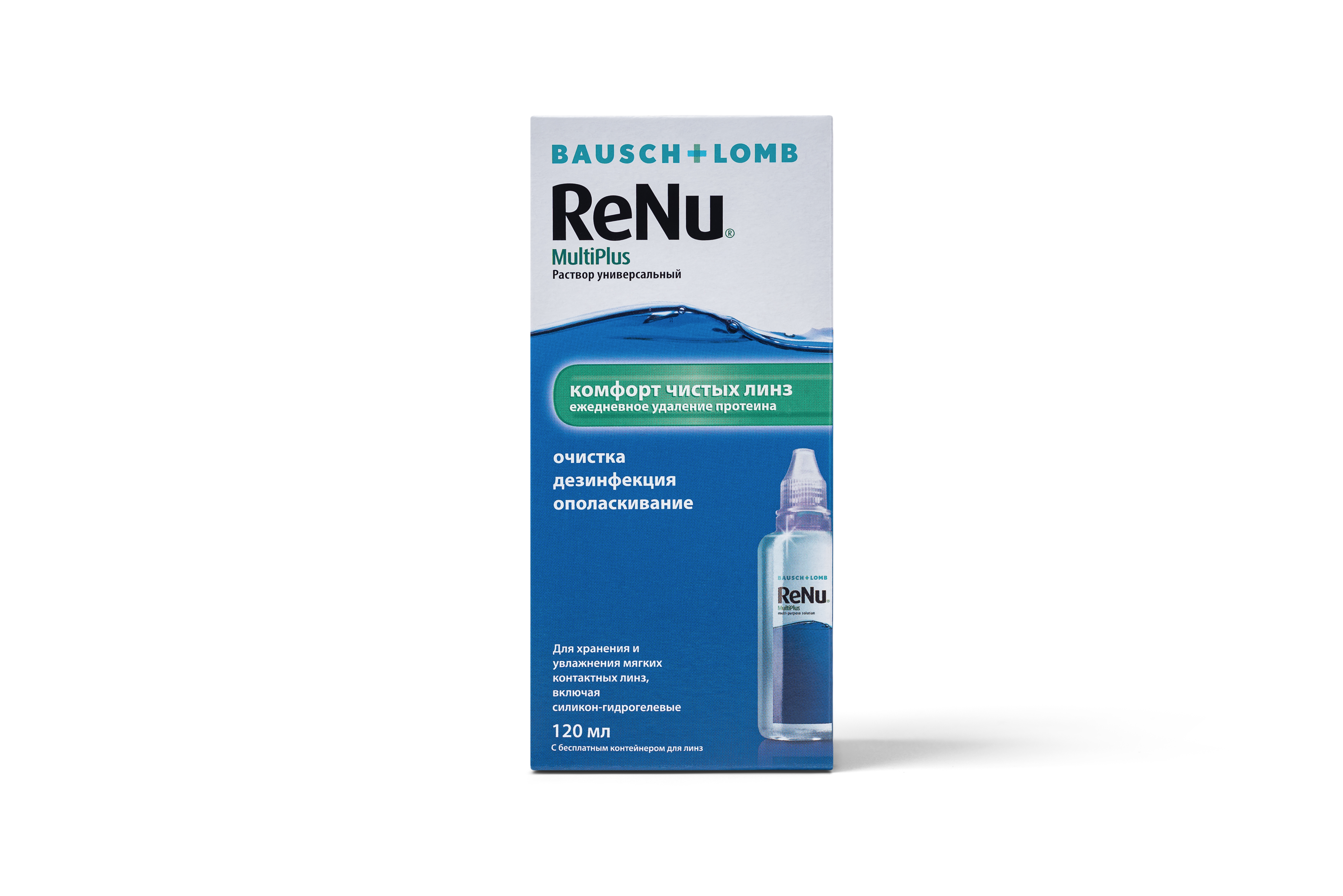 ReNu® MultiPlus обеспечивает профессиональный уход за контактными линзами, гарантируя их чистоту и комфорт при ношении благодаря инновационной формуле и комплексному действию.