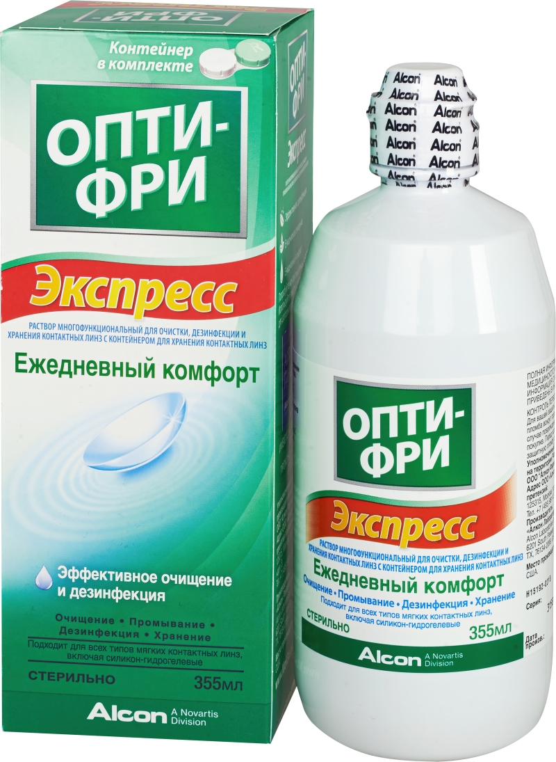 ОПТИ-ФРИ® ЭКСПРЕСС® — современный многоцелевой раствор для комплексного ухода за всеми типами мягких контактных линз, включая силикон-гидрогелевые.
